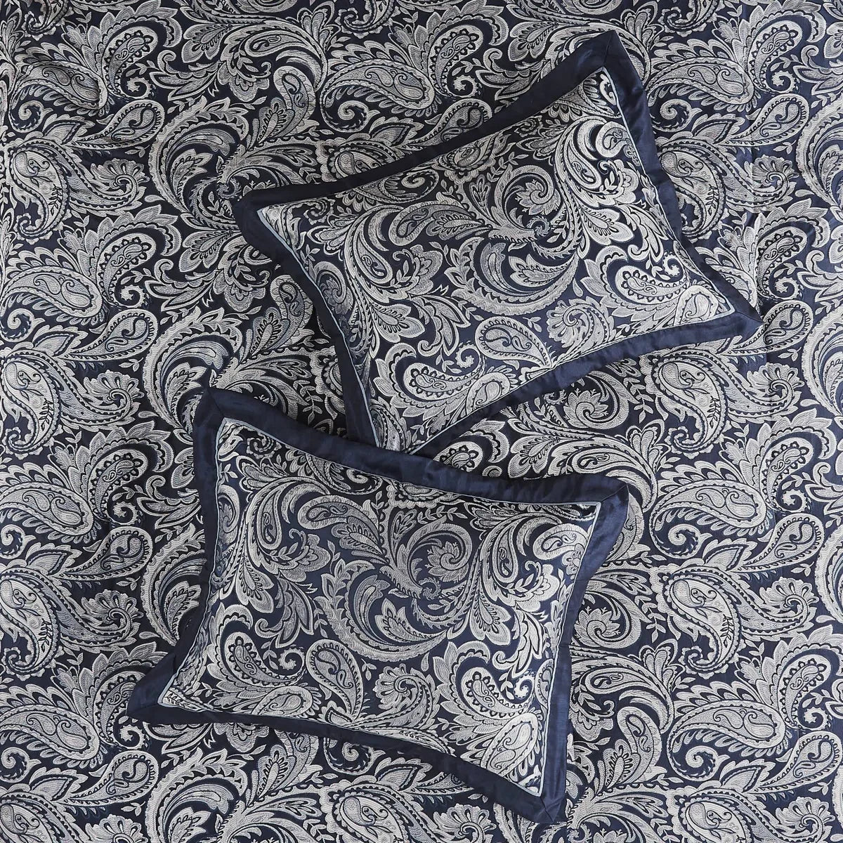 Give your bedroom a classic and elegant look with this 12 Piece Complete Bed Set including cotton bed sheets. This stunning set features a jacquard weave with a modern paisley pattern. The comforter and shams have a 2" flange and 1/2" flat piping for a refined touch. The comforter reverses to a shade that complements the 100% cotton, 200 thread count sheet set. This set includes everything you need to create a luxurious and cozy bed. Some items may arrive in compact packaging: just fluff them up or iron them lightly and they're ready to use.