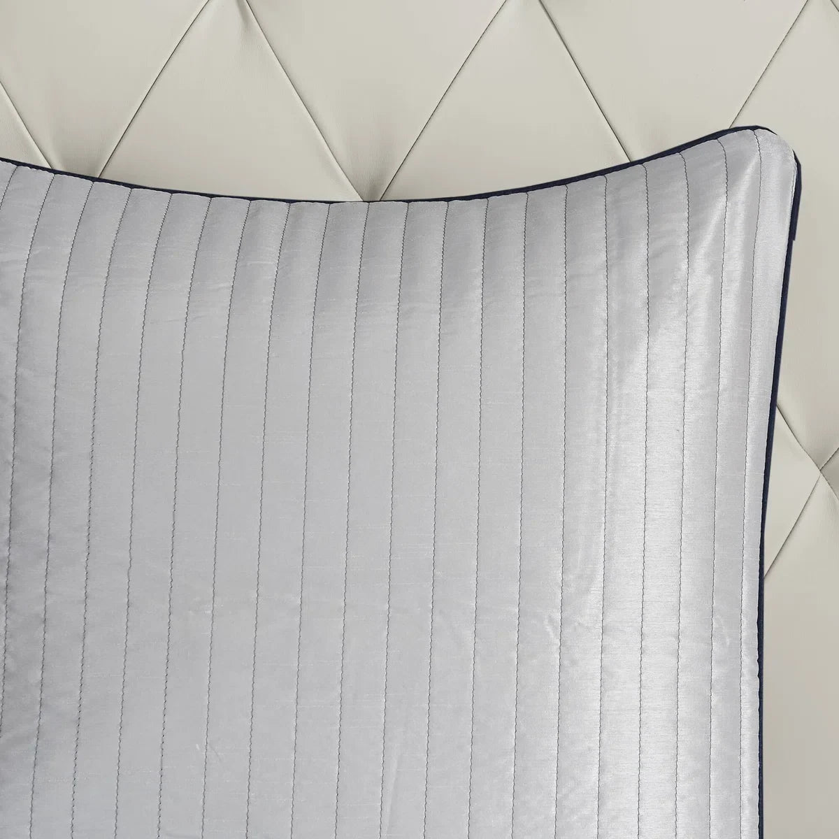- The set includes a comforter, 2 matching shams, 2 Euro shams, 2 throw pillows, 1 bed skirt, 1 fitted sheet, 1 flat sheet, and 2 pillowcases.